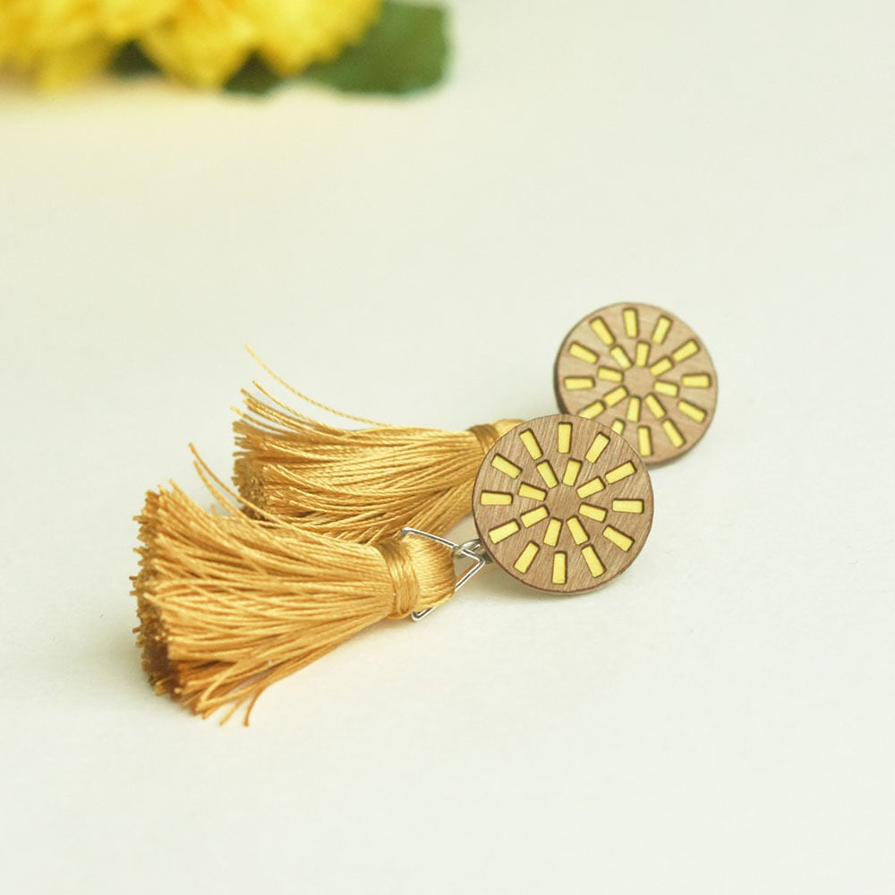 タッセルたんぽぽ ウッドピアス/イヤリング