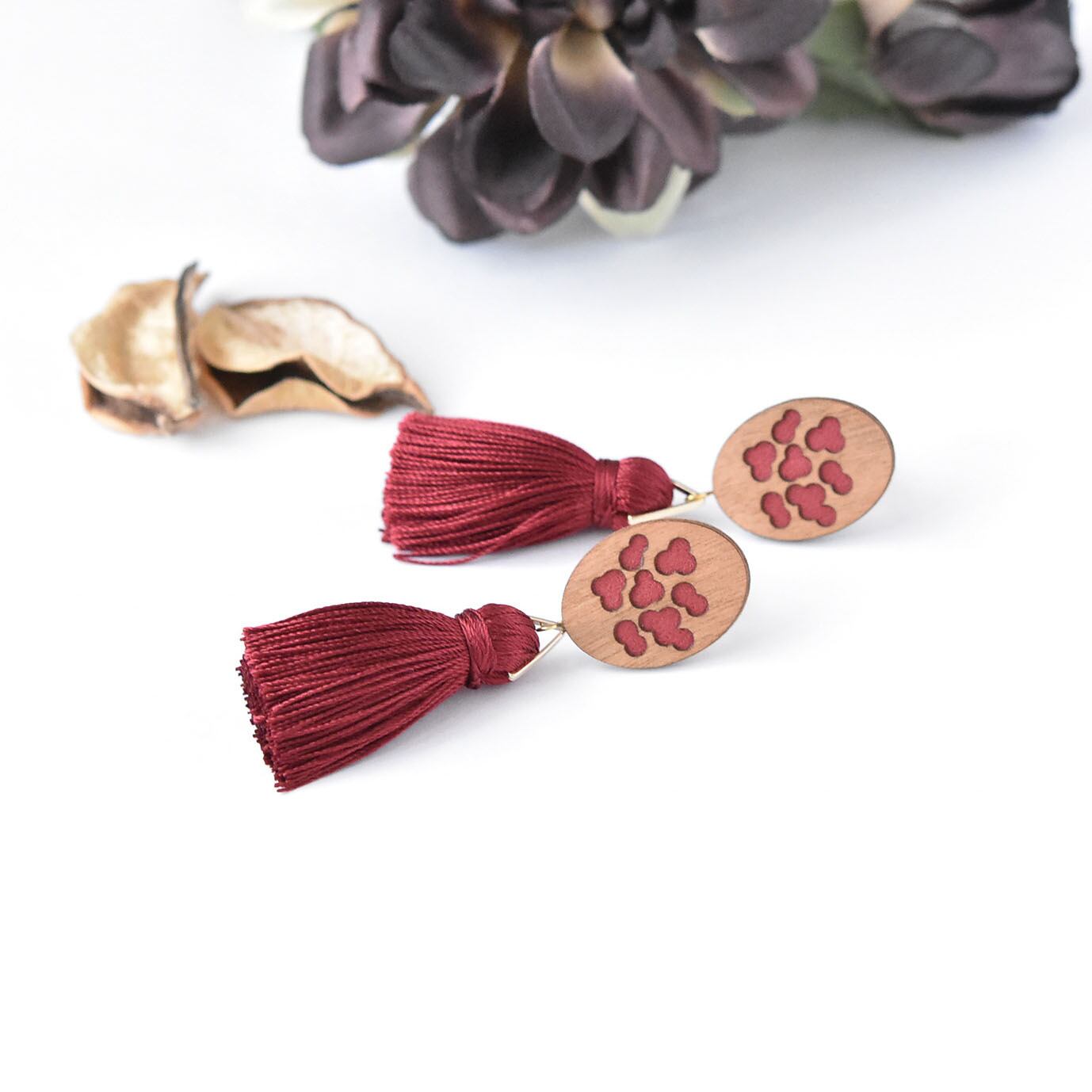 タッセルあずき ウッドピアス/イヤリング