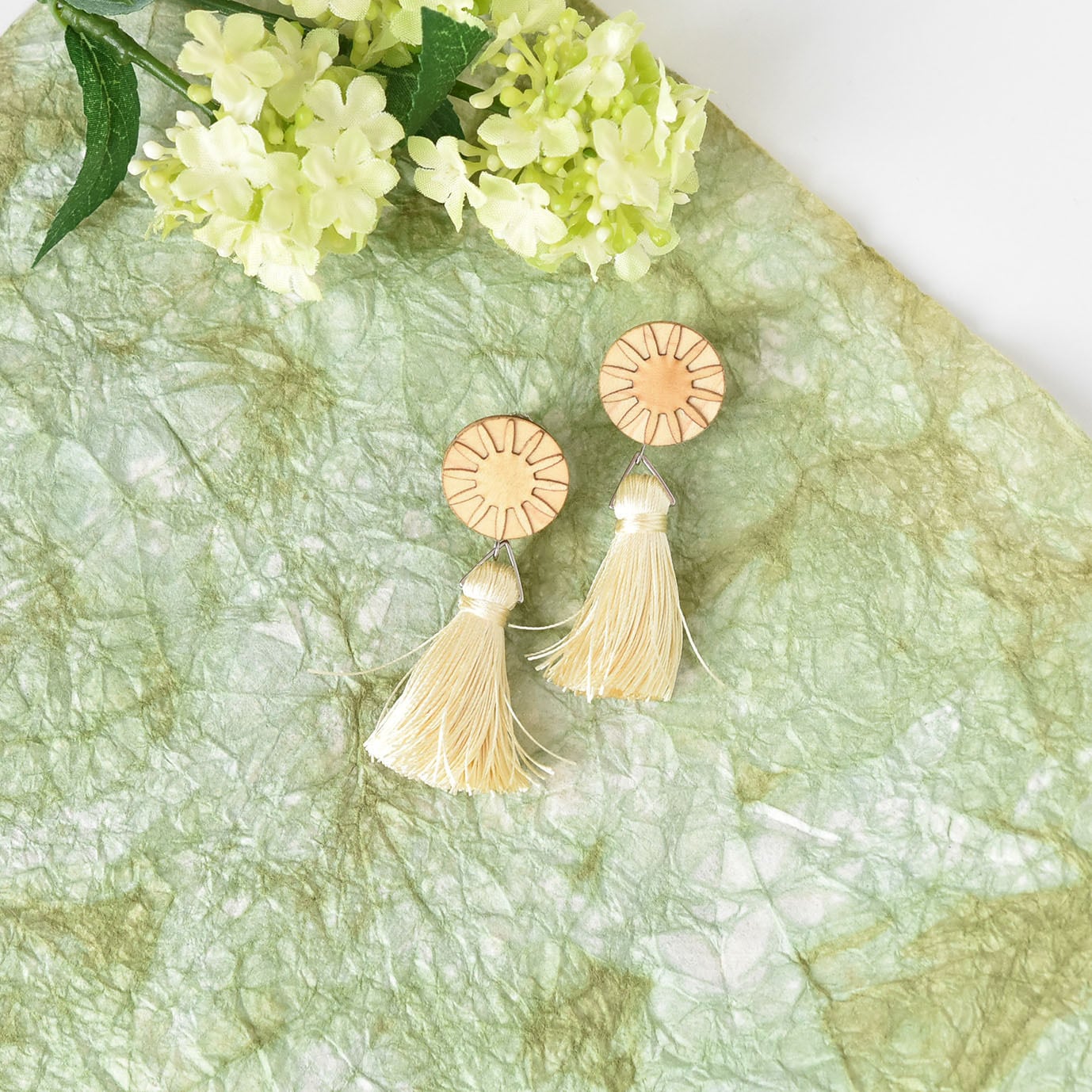 タッセルわたげウッドピアス/イヤリング