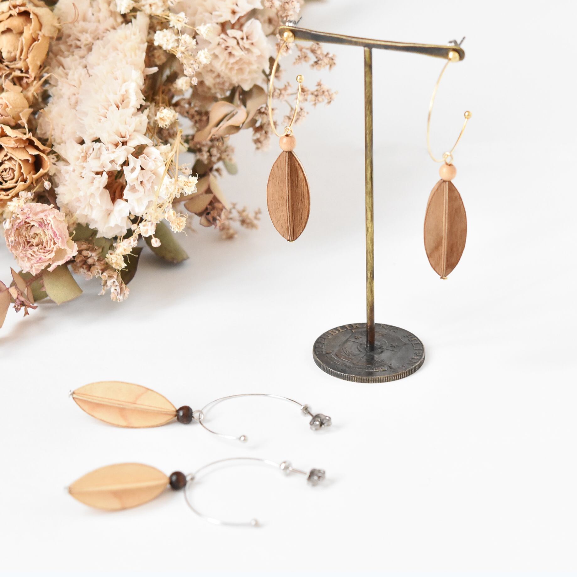 素材:ウッド、チタン【ピアス】、真鍮【イヤリング】